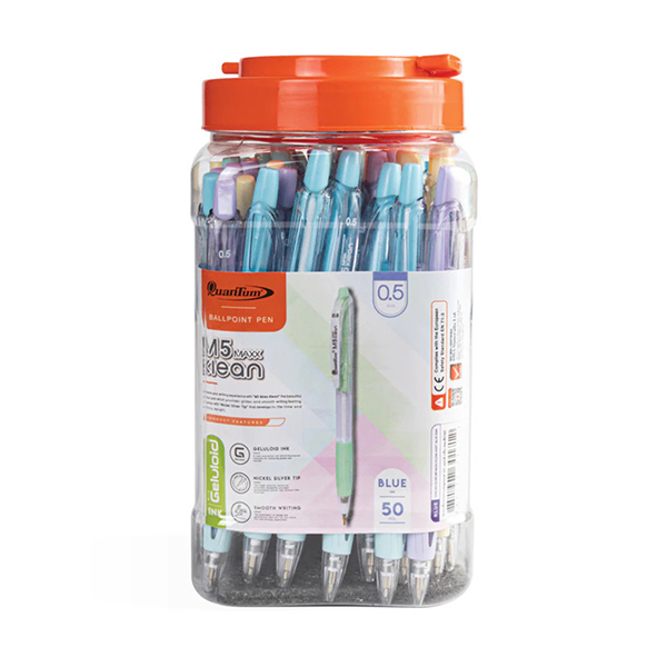 ปากกาลูกลื่น ควอนตั้ม M5 Maxx Klean 0.5 มม. สีน้ำเงิน 50 ด้าม (ด้ามคละสี)