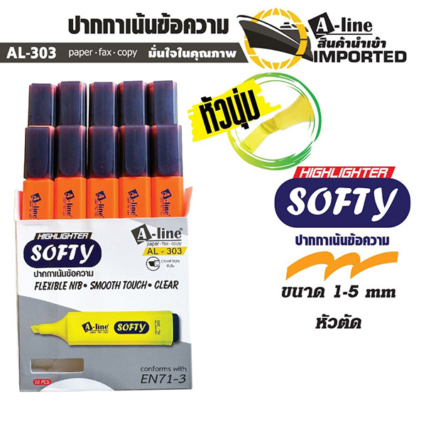 ปากกาเน้นข้อความ A-LINE รุ่น AL-303 Softy สีส้ม