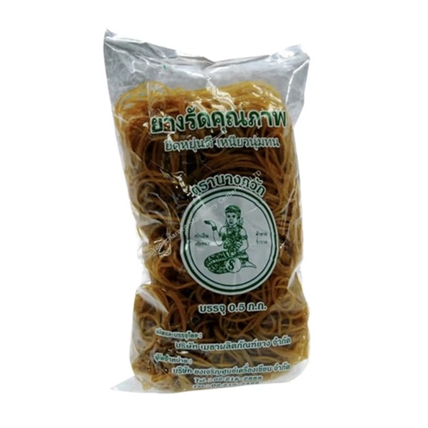 หนังยางวงใหญ่ ยี่ห้อนางกวัก 0.5 กก. หนา 0.5 มม. สีเหลือง