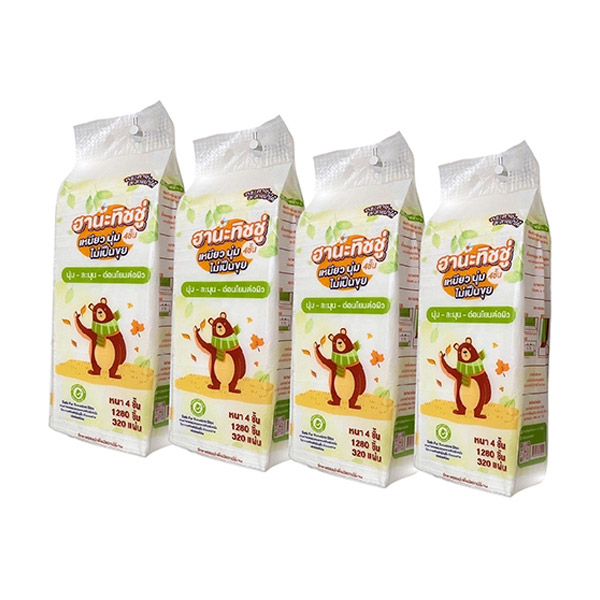 กระดาษเช็ดหน้าไร้ฝุ่น ฮานะ หนา 4 ชั้น 320 แผ่น x 4 ห่อ