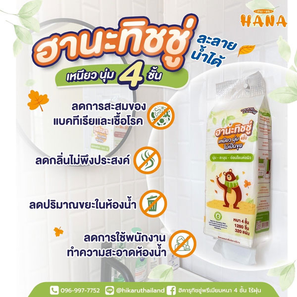 ฮานะทิชชู่ละลายน้ำได้ หนา 4 ชั้น